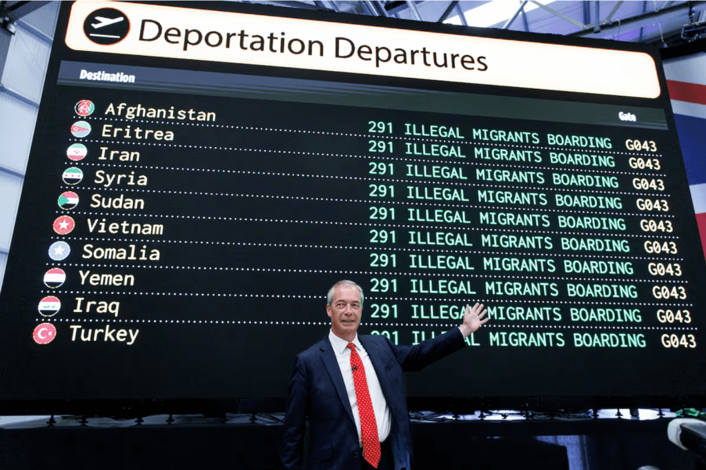 En el Reino Unido, Nigel Farage, líder de Reform UK, relanza su discurso xenófobo.